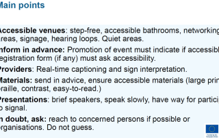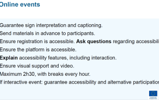 Europski forum za osobe s invaliditetom organizirao je online trening/edukaciju na temu „Kako organizirati događaj pristupačan za osobe s invaliditetom“. Online edukacija kojom se sudionicima pružilo brojne korisne informacije i savjete o načinu osiguranja pristupačnosti događanja kao što su konferencije, [...]