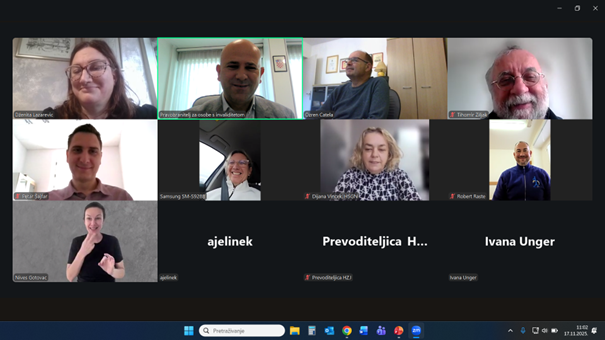 Dana 17. studenoga održan je treći sastanak Stručnog savjeta pravobranitelja za osobe s invaliditetom, ovaj put online na platformi Zoom. Na sastanku su sudjelovale članice i članovi Stručnog savjeta iz Zagreba (Marica Mirić, Dijana Vincek, Ivana Unger i Petra Rundek), Zaprešića (Tihomir Žiljak), Osijeka (Petar Šajfar), Pule (Robert Raste i Ozren Catela) i Dubrovnika (Dženita Lazarević). Kao gošća na ovom sastanku je sudjelovala predstavnica Agencije za komercijalnu djelatnosti – AKD-a, direktorica Sektora za poslovne rezultate i procese Adela Jelinek Bišćan.