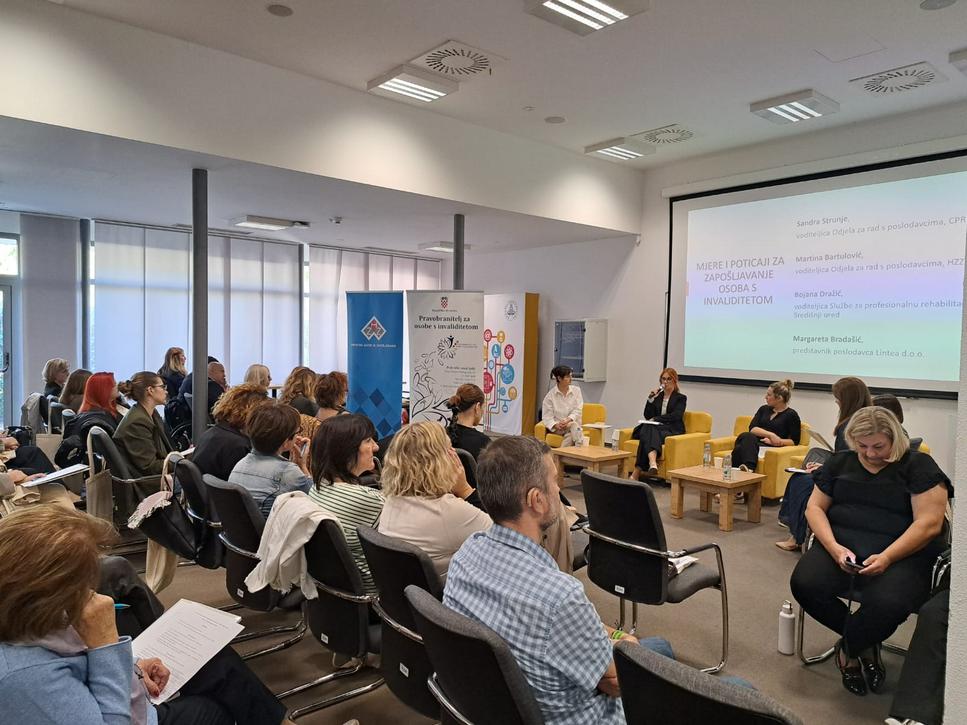 Posebnu vrijednost panelu je donijelo osobno iskustvo poslodavca Lintea d.o.o. koji zapošljava osobe s invaliditetom, ali i inspirativna priča gđe. Nikoline Sobol koja je koristeći pravo na prilagodbu radnog mjesta s prisutnima podijelila kakvo je uključivanje u svijet rada za nju imalo značenje.